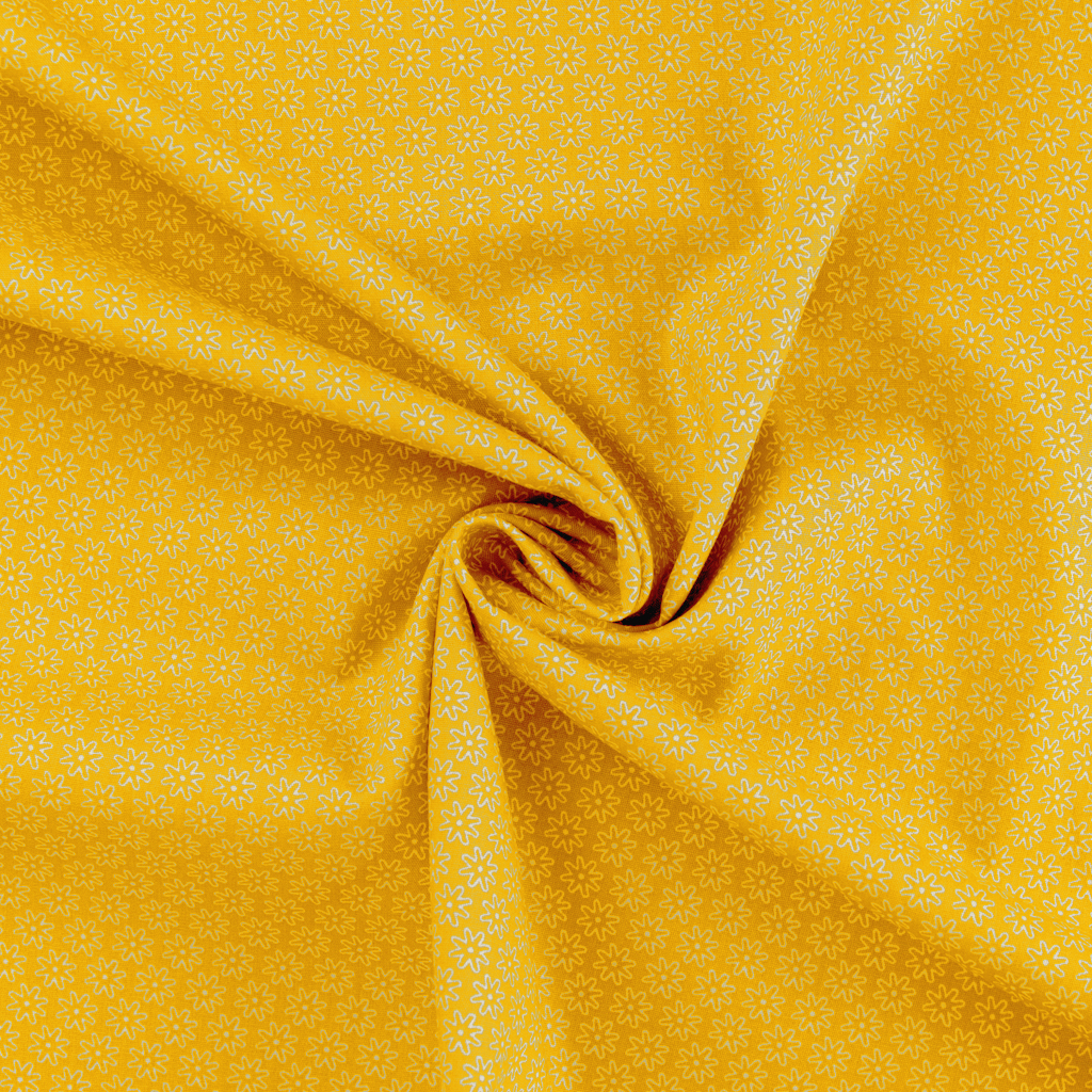 Baumwoll - Popeline Daisy mit kleinen Blüten in weiß auf gelb