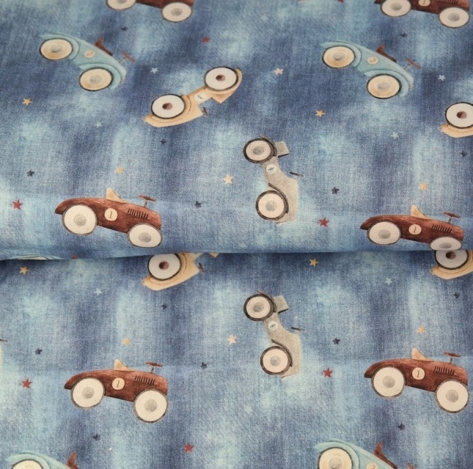 Baumwoll Popeline mit Autos - jeansoptik - Digitaldruck