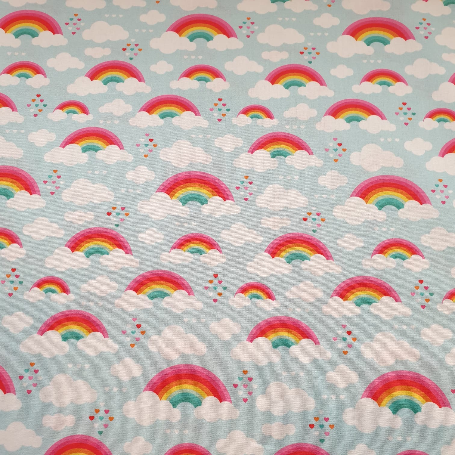 Mobile Preview: Baumwoll Webware Kim - Regenbogen und Wolken auf hellblau - Rest 0,5 m