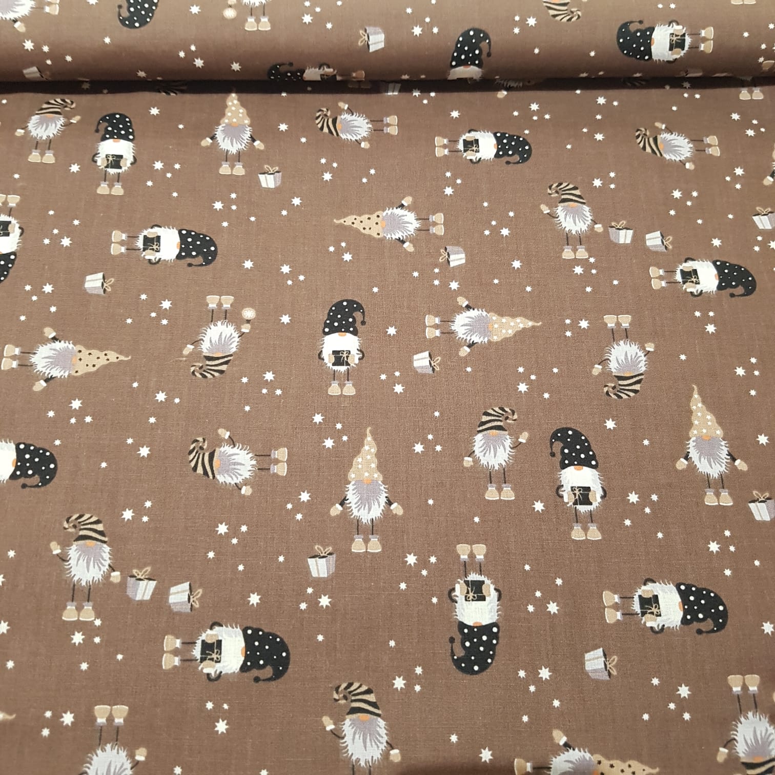 Baumwoll - Webware Weihnachts - Wichtel auf braun