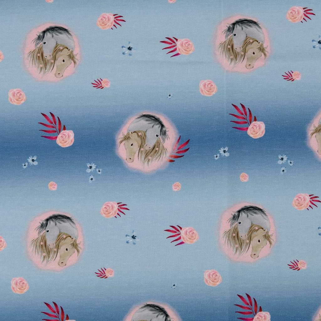 Baumwolljersey Pferde auf blau - Farbverlauf - Digitaldruck