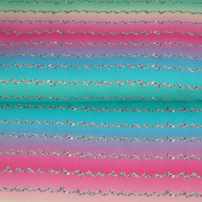 Baumwolljersey Regenbogen - Silber - Streifen - Digitaldruck