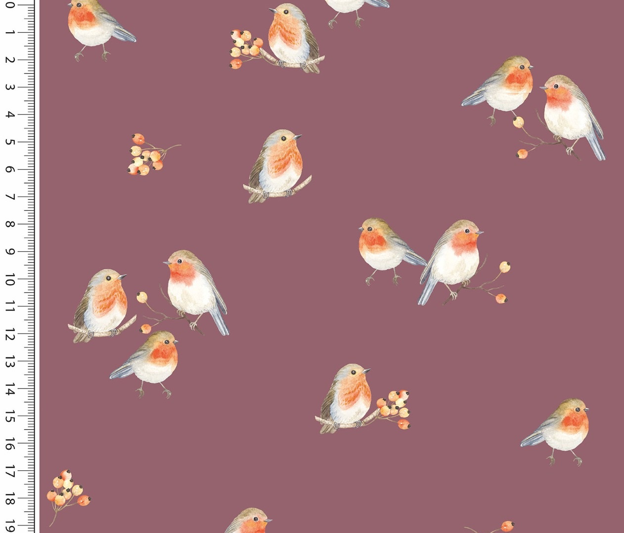 Baumwolljersey Rotkehlchen - kleiner Vogel mit Beeren