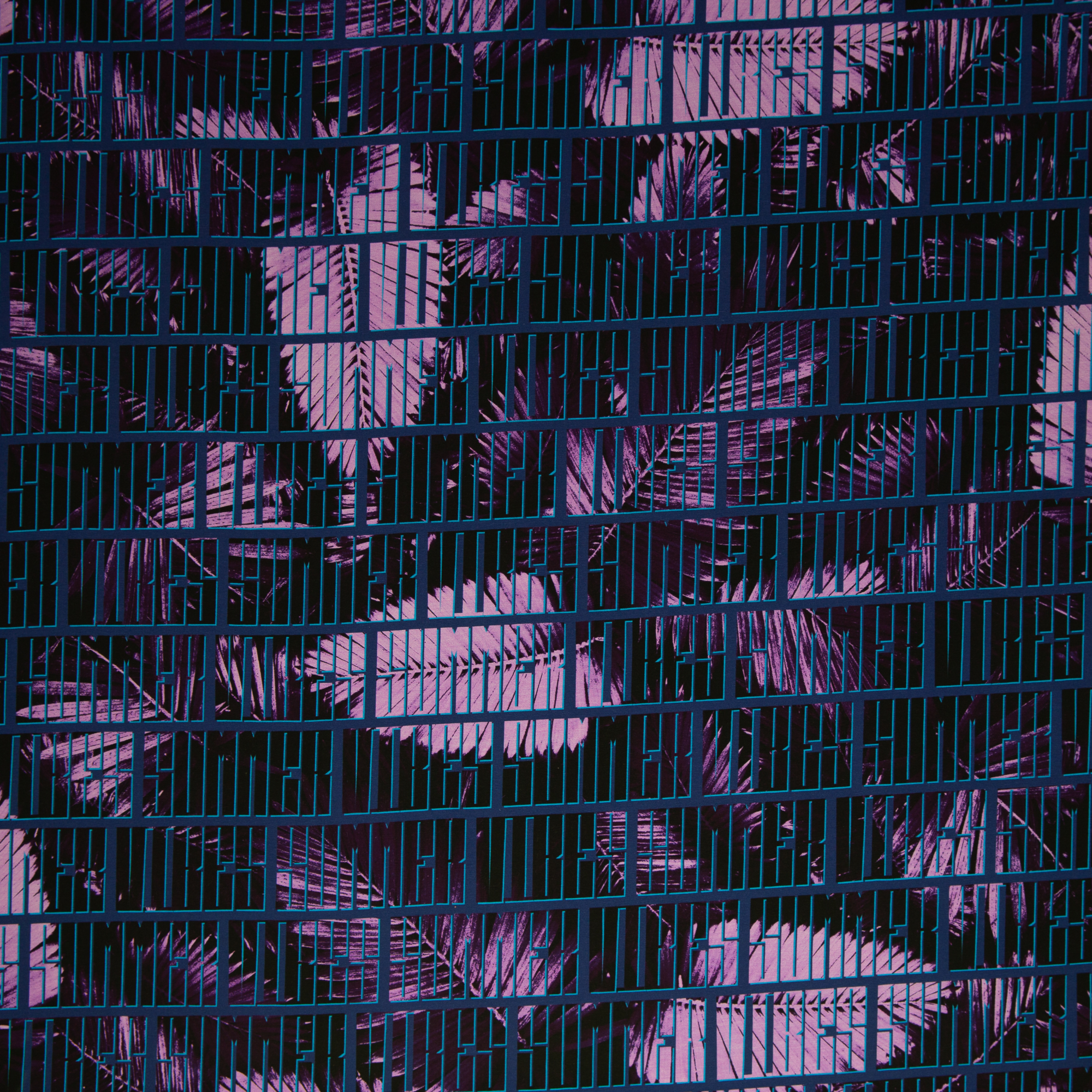 Mobile Preview: Baumwolljersey Summer Vibes by Thorsten Berger - Allover Schrift Summer Vibes mit Blättern