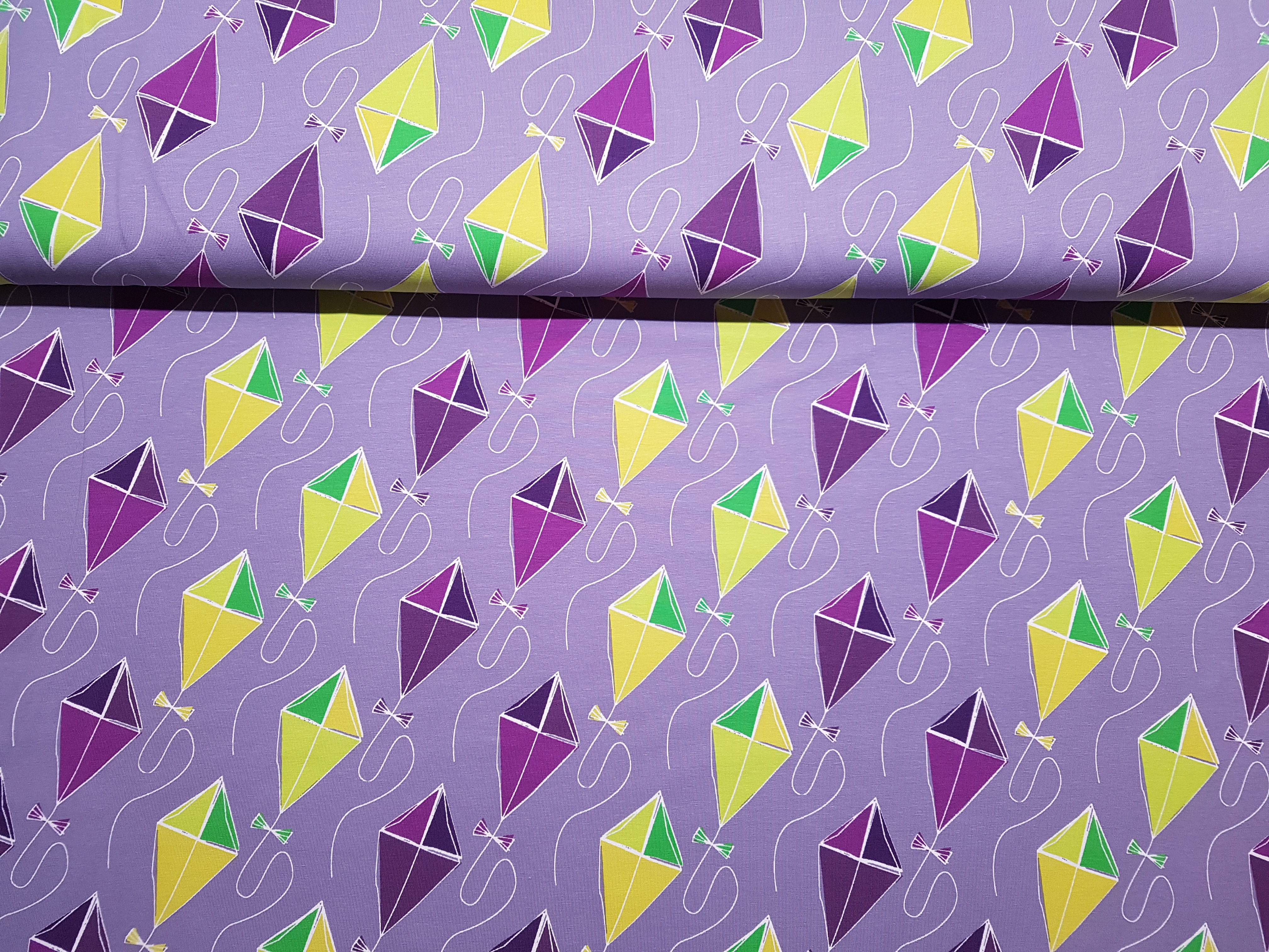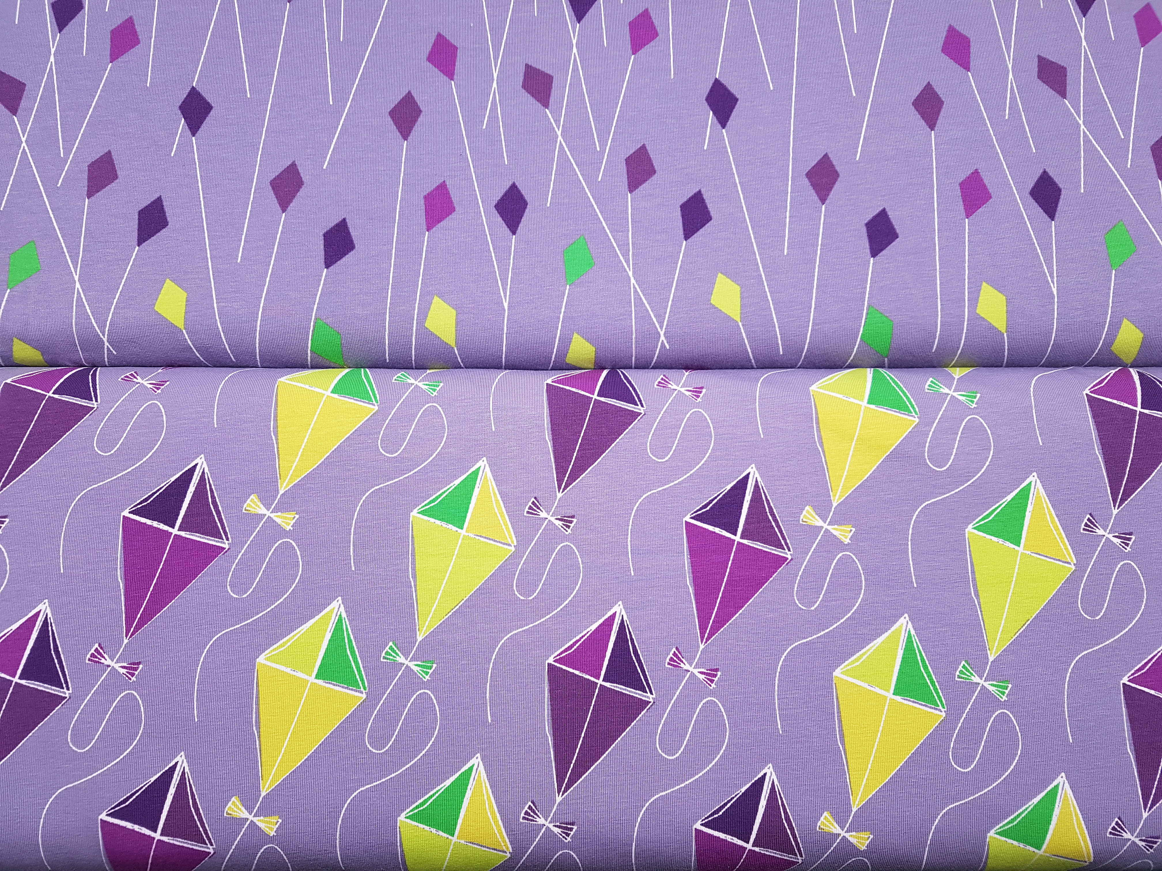 Preview: Drachenflug von Blaubeerstern - Baumwolljersey flieder - große Drachen - Rest 0,5 m
