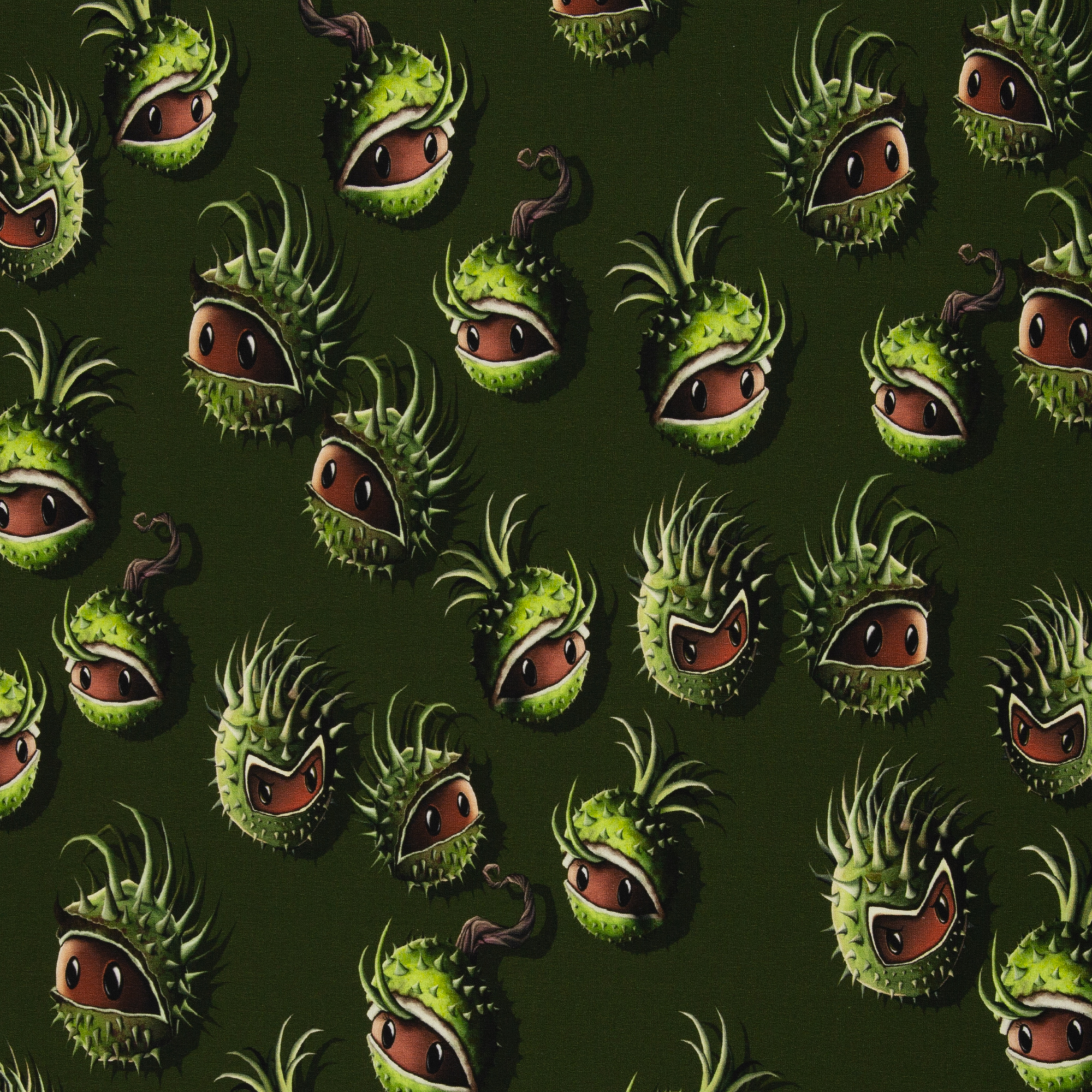 French Terry Chestnut Friends by Thorsten Berger - Kastanien auf grün