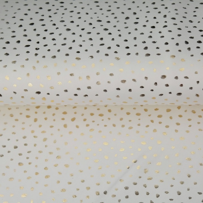 French Terry mit goldnen Glitzerpunkten auf weiß