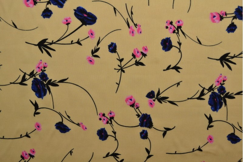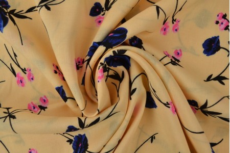 Viskose Webware Blüten auf gelb