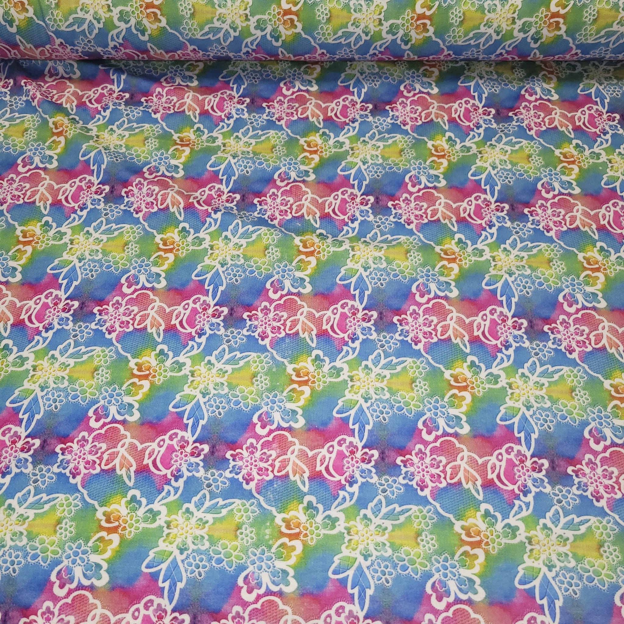 Mobile Preview: Viskosejersey Spitze in weiß - regenbogen - Lace - Digitaldruck